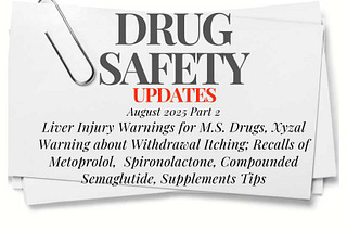 August 2025 Safety Update Part 2: Liver Injury and MS Drugs; Xyzal Warning; Recalls for Metoprolol, Spironolactone, Compounded GLP-1s…
