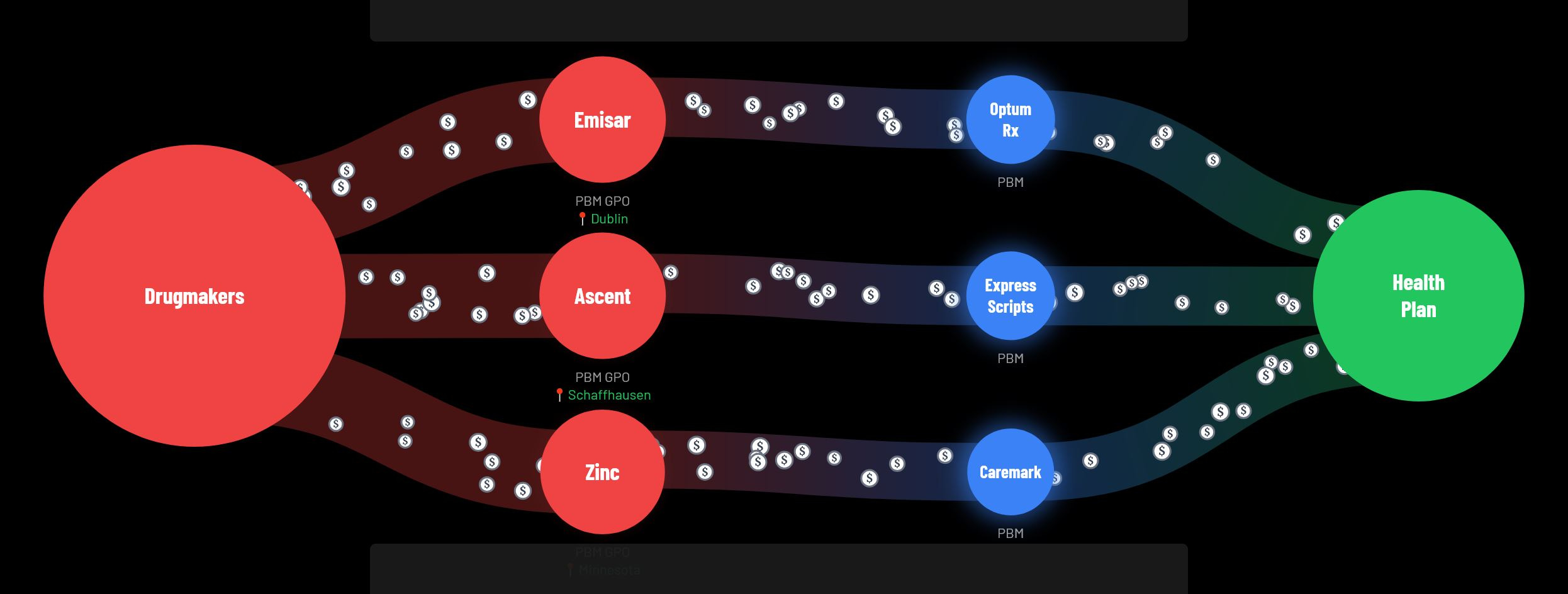 Investigative news organization Hunterbrook Media spent a year investigating the mysterious group purchasing organizations run behind the scenes by the big three PBMs (CVS, United Health, and Cigna). Hunterbrook’s investigative report “The Hidden Flow of Drug Money” was entered into the Congressional record in a recent hearing where the big three health insurance executives were questioned by lawmakers. Click on the link in the caption below to access the page with the interactive graphic that clearly explains the findings. “Drug manufacturers pay billions in discounts, rebates and fees to pharmacy benefit managers (PBMs). But where does that money actually go? Follow the flow.”